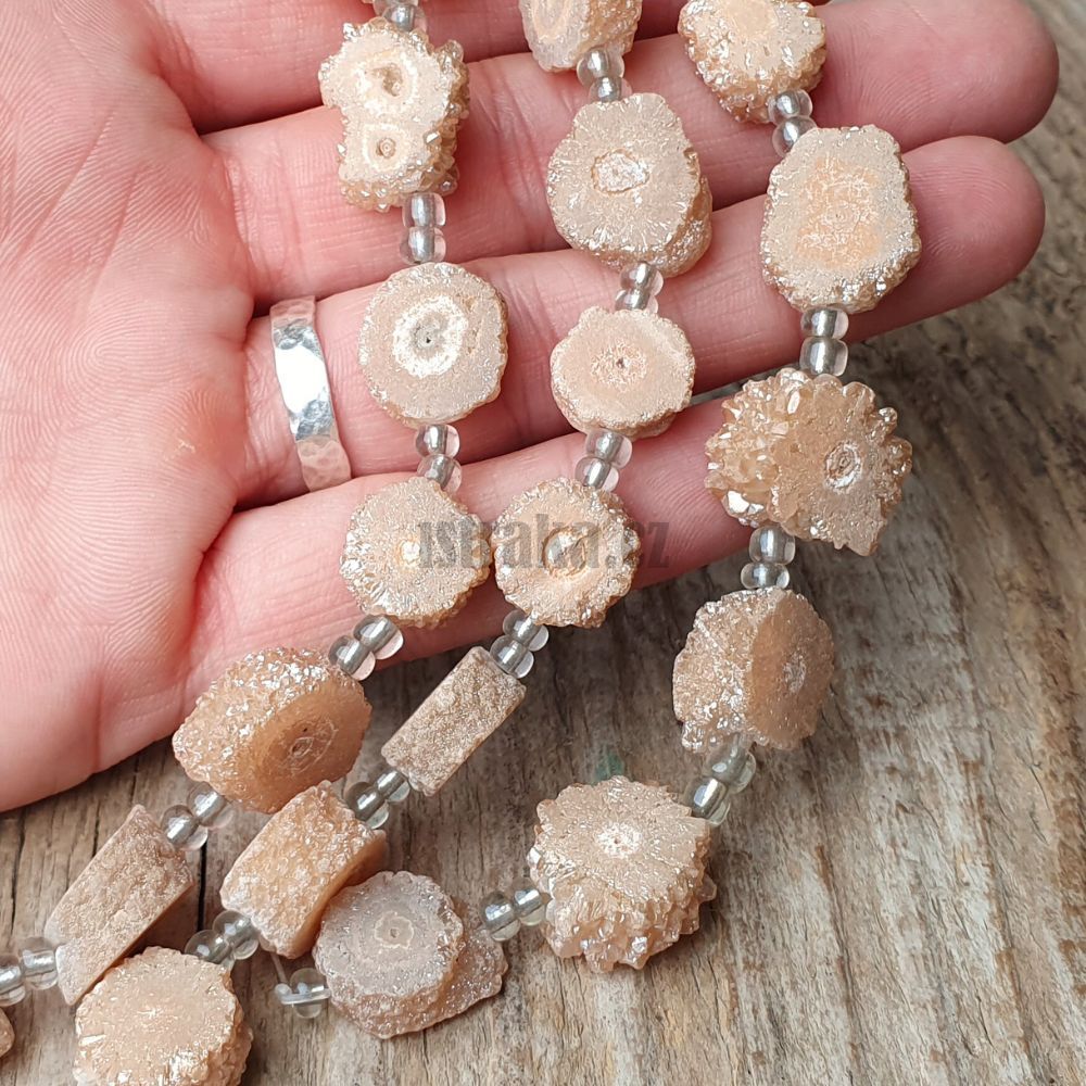 - Achát drůzy korálky zlaté půlšňůra