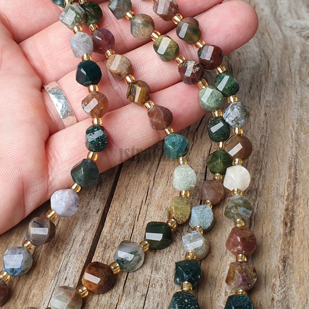 - Achát indický korálky 8mm twist výbrus půlšňůra
