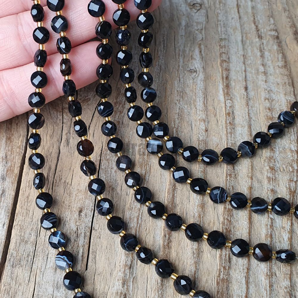 Achát krajkový korálky 6mm černý disky broušené půlšňůra