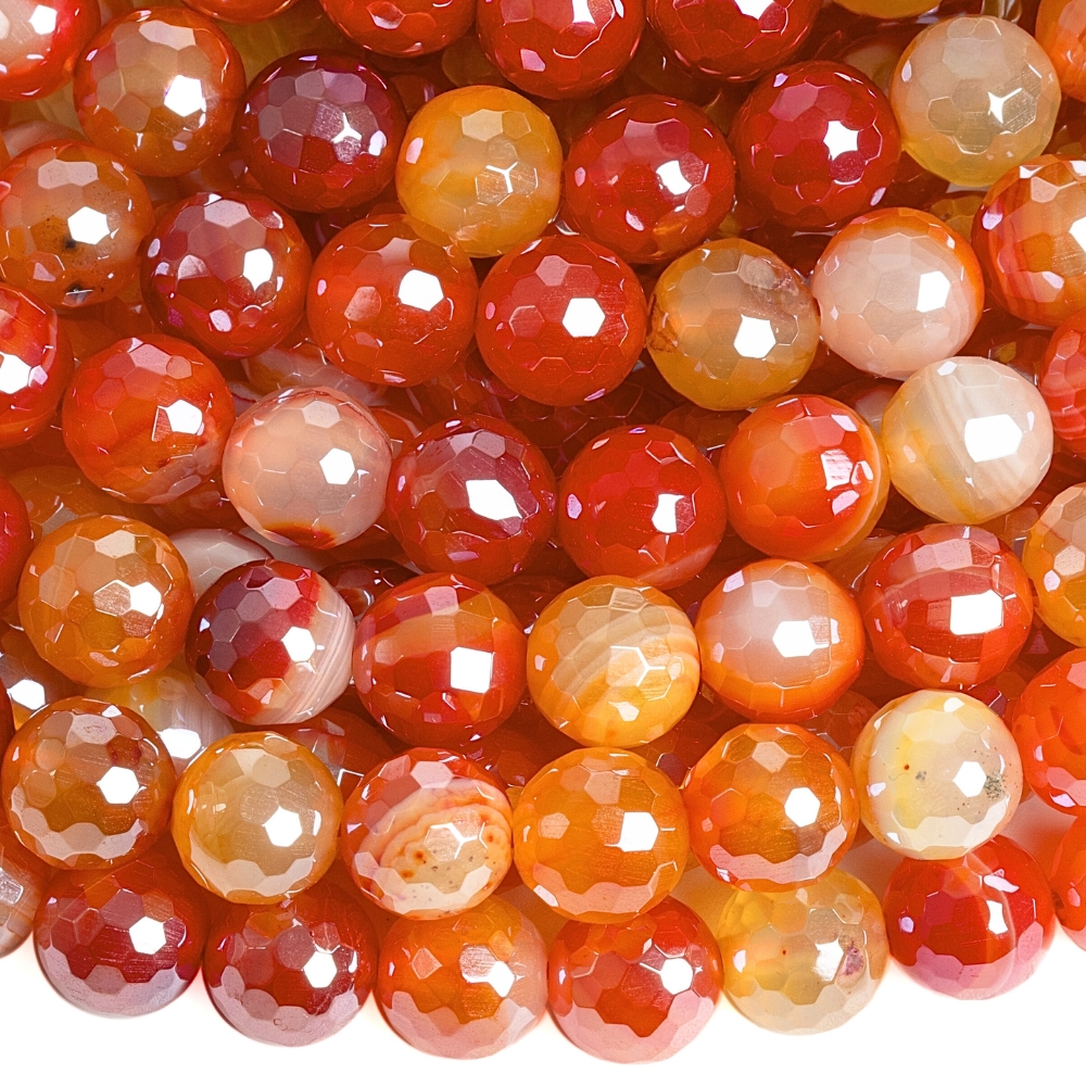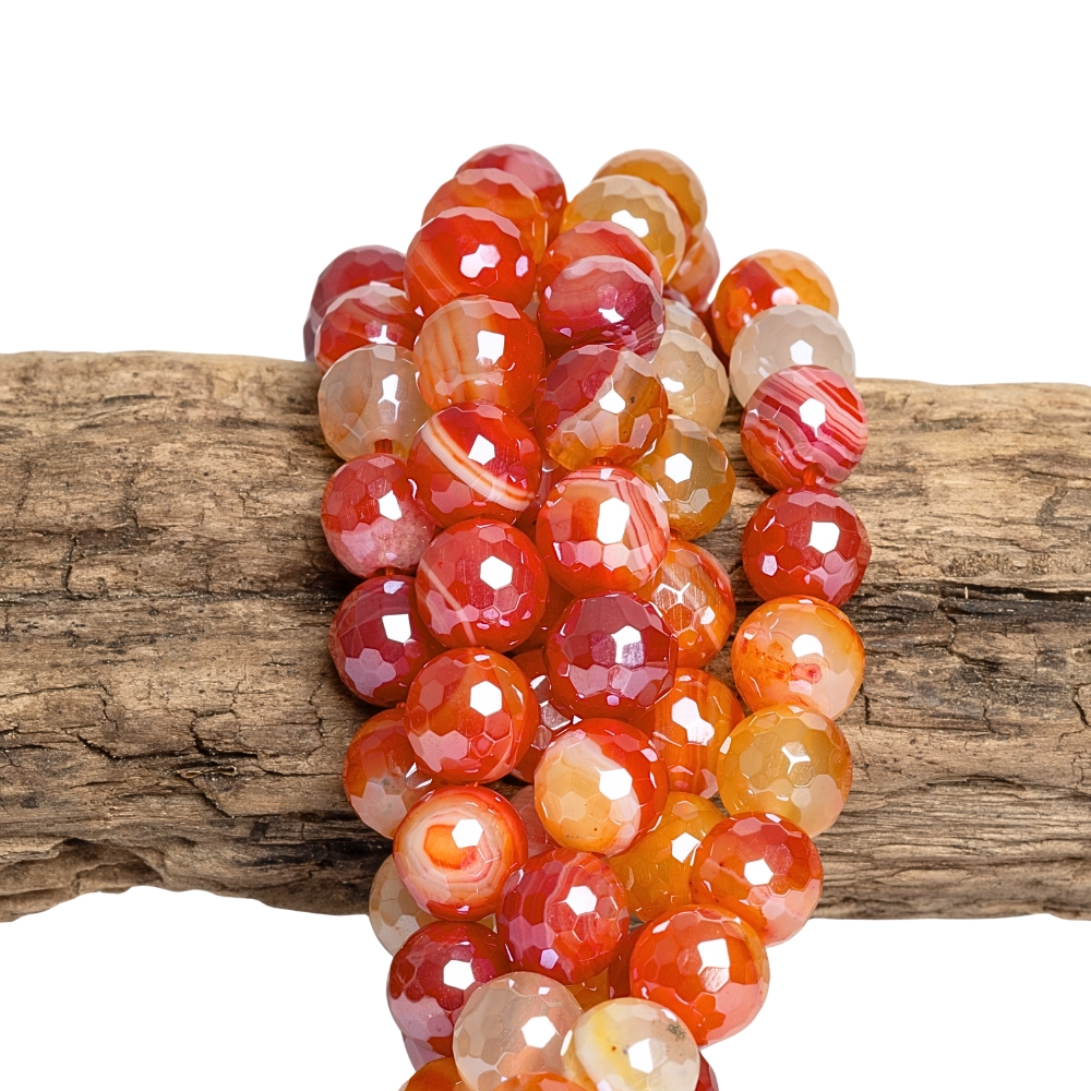 Achát krajkový korálky 8mm broušené červené s pokovem šňůra