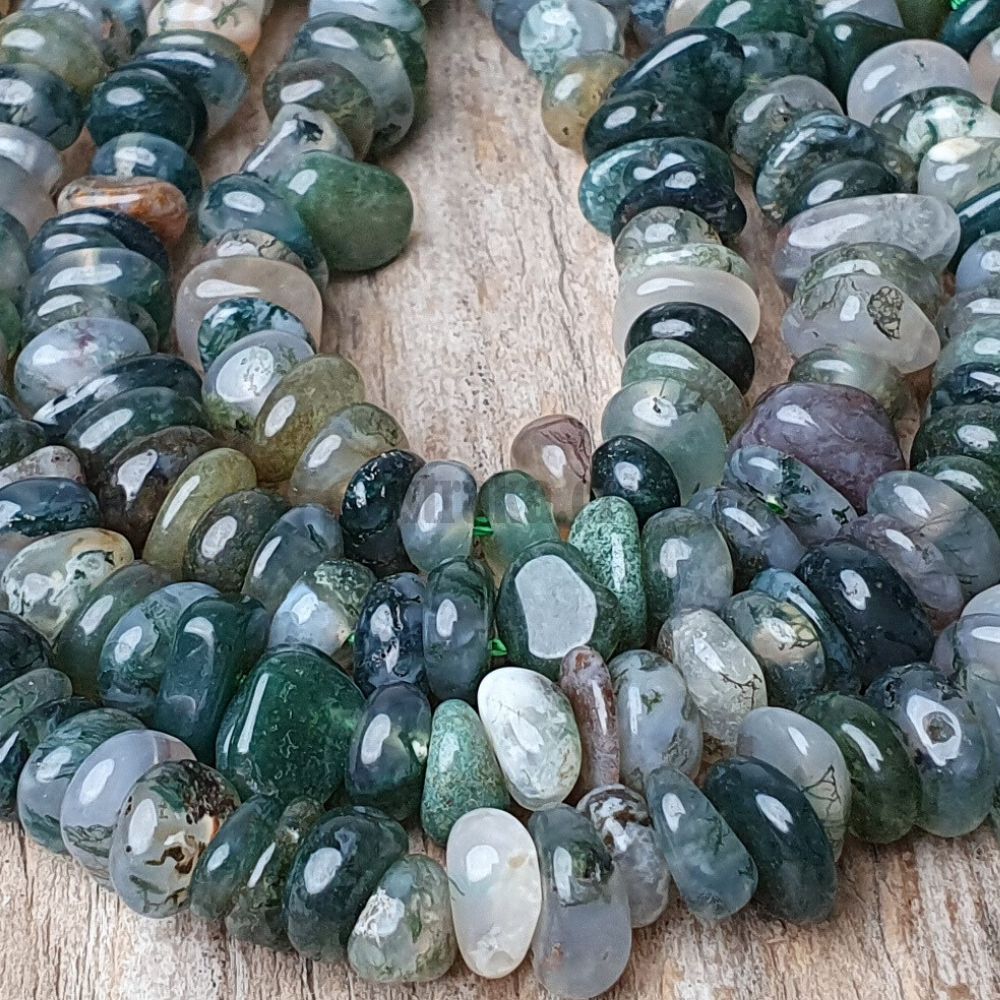 Achát mechový korálky nepravidelné rondelky šňůra