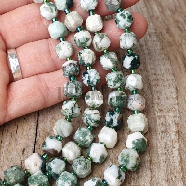 - Achát stromečkový korálky 8mm kostky broušené půlšňůra