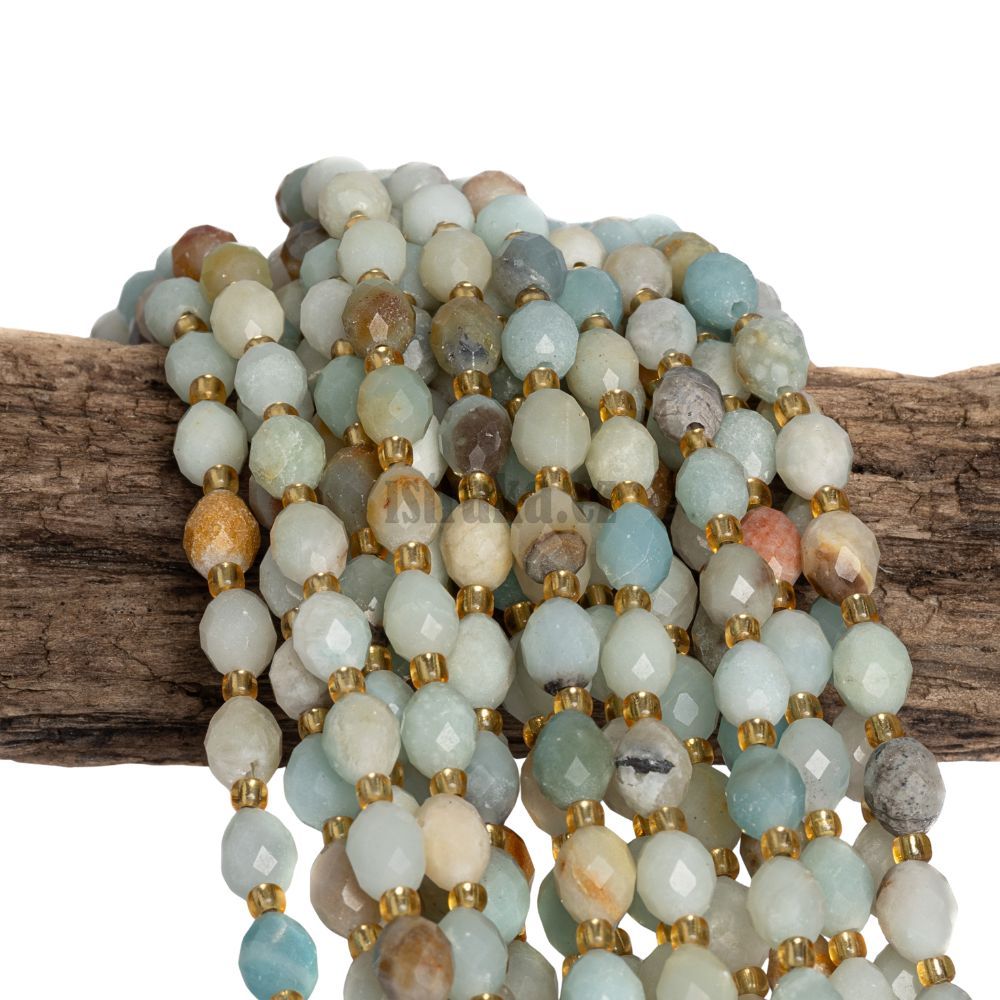 - Amazonit korálky 6x8mm olivy s rondelkami půlšňůra