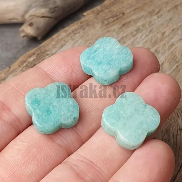 - Amazonit tyrkysový korálek 18mm čtyřlístek