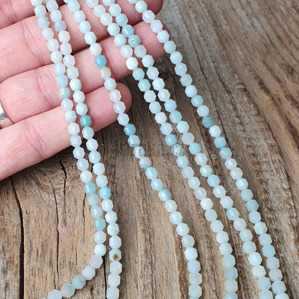 - Amazonit tyrkysový korálky 4mm broušený soudek půlšňůra