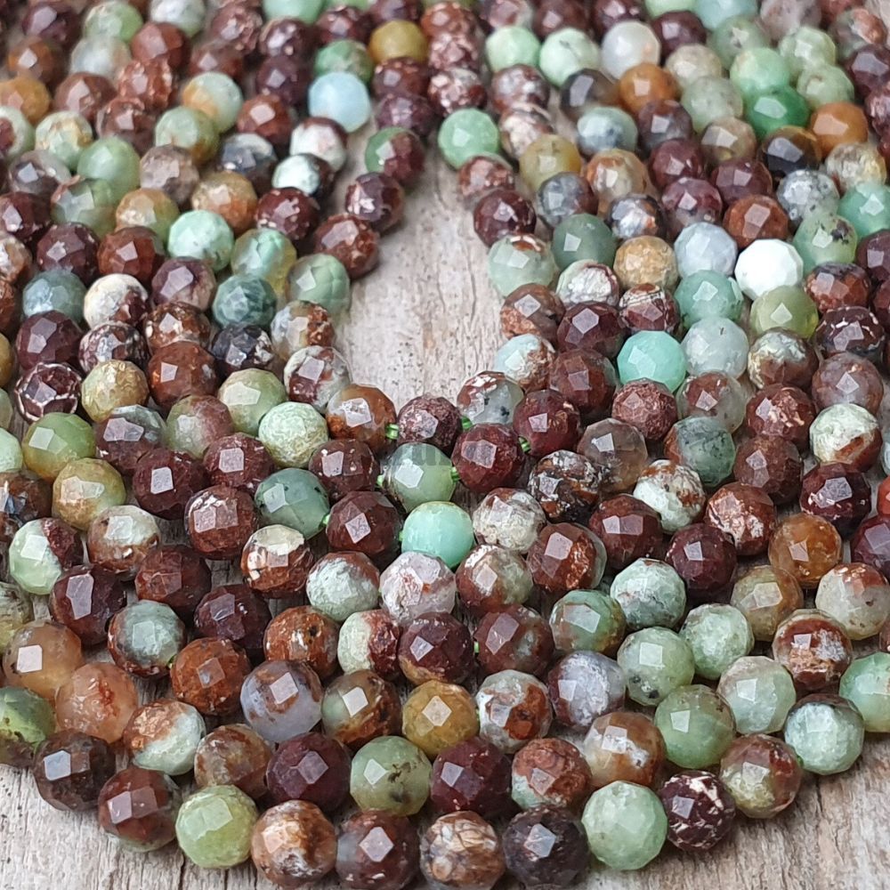 Chryzopras hnědozelený korálky 3mm broušené šňůra