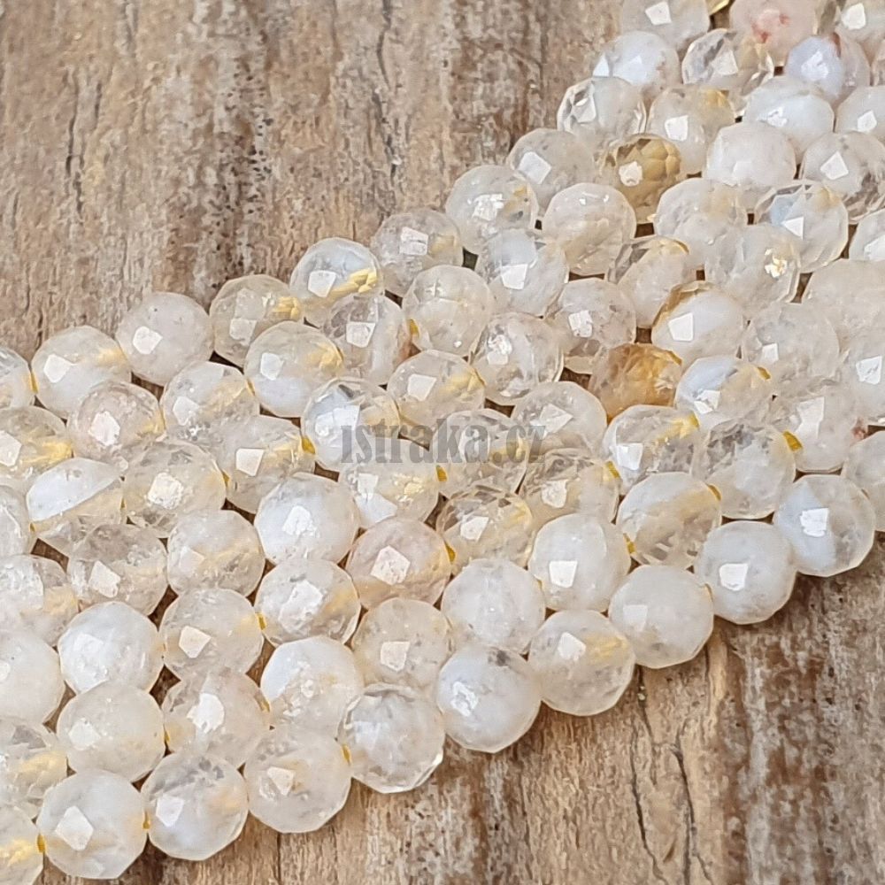 Citrín bílo žlutý korálky 3mm broušený šňůra