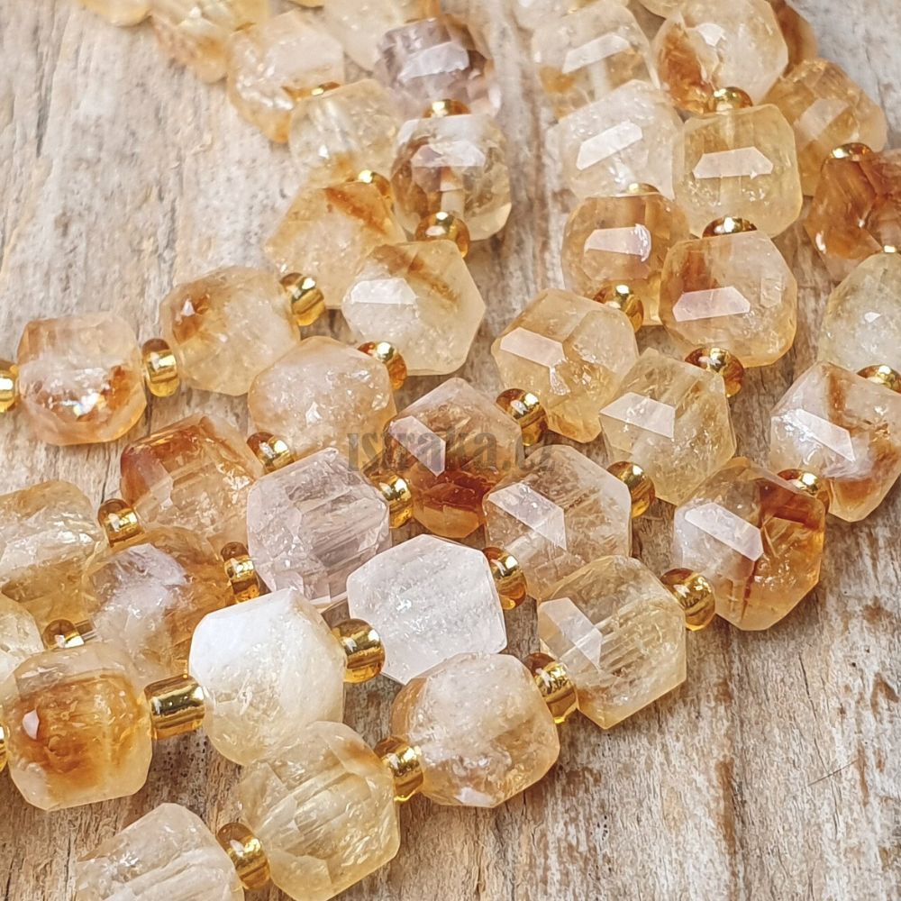 - Citrín korálky 7mm kostky broušené půlšňůra