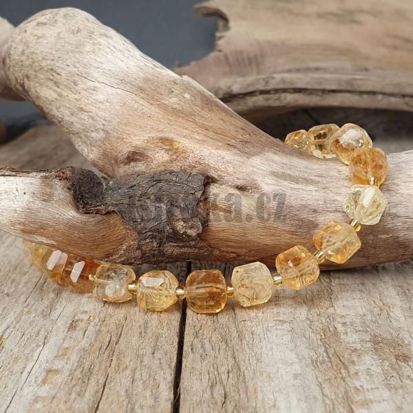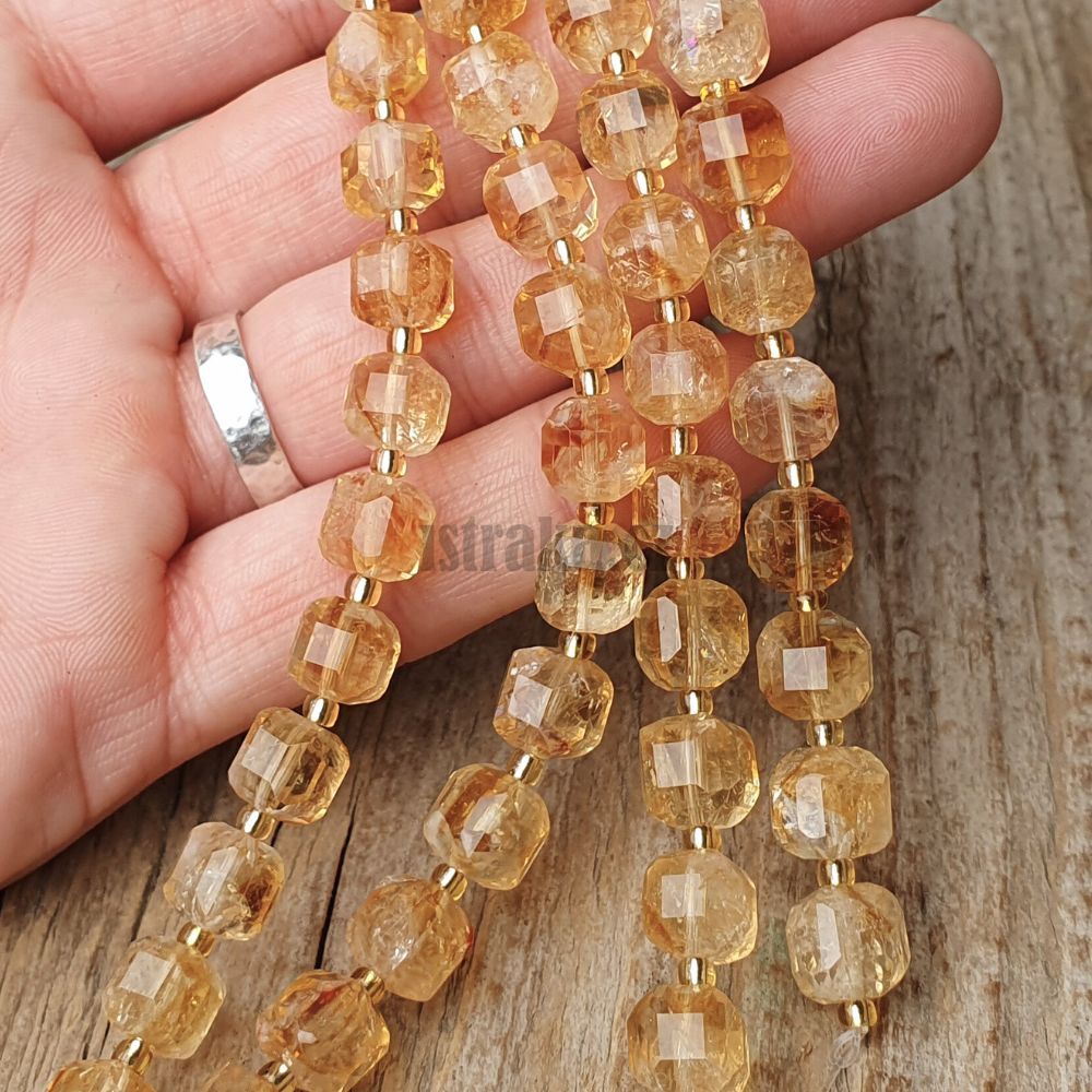 - Citrín korálky 8mm kostky broušené půlšňůra
