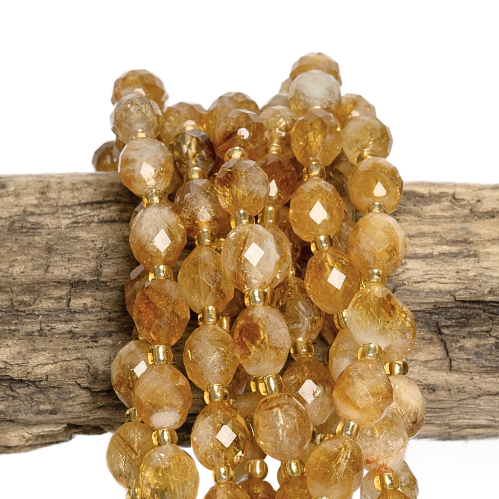 - Citrín korálky olivy 7x8mm broušené půlšňůra