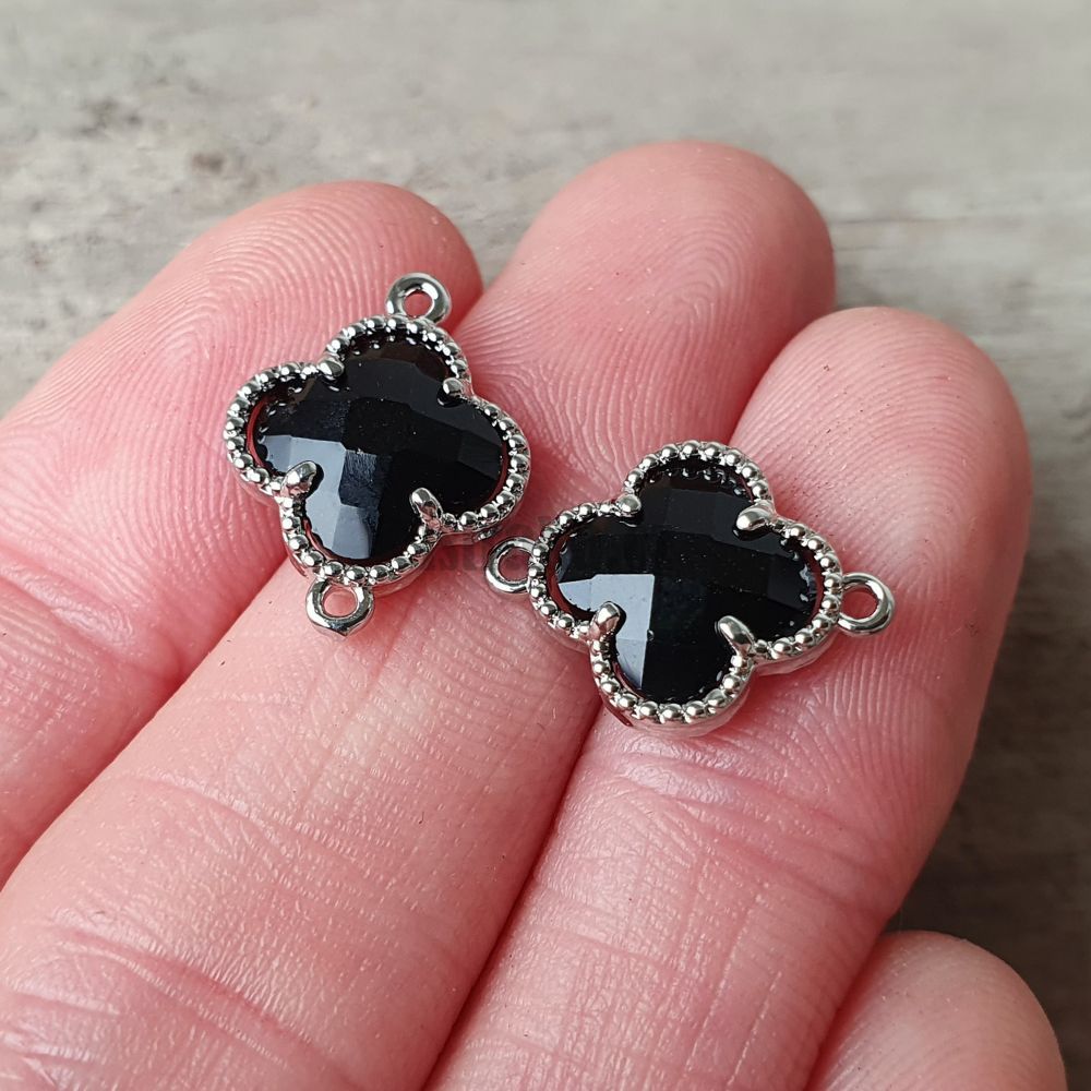 • Čtyřlístek medzikus 16x12mm stříbrný s černým zirkonem