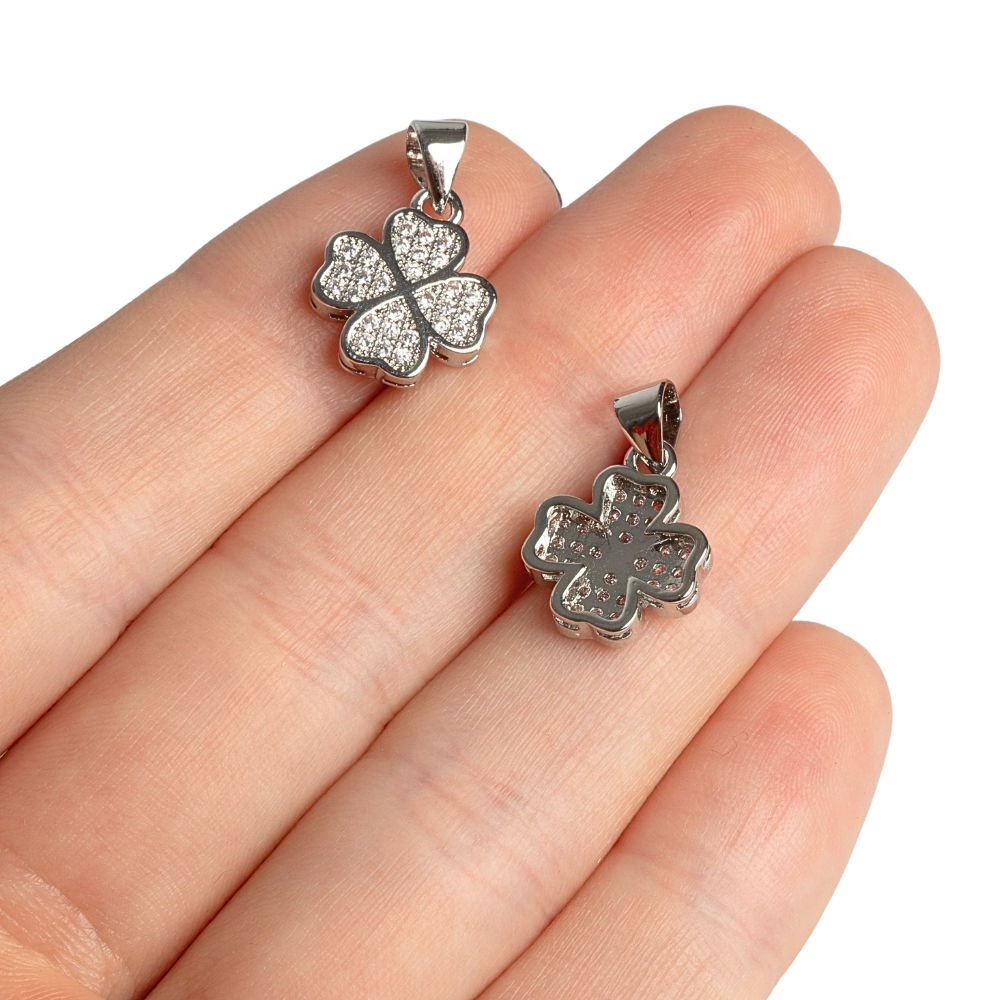 Čtyřlístek přívěsek se šlupnou stříbrný s bílými zirkony