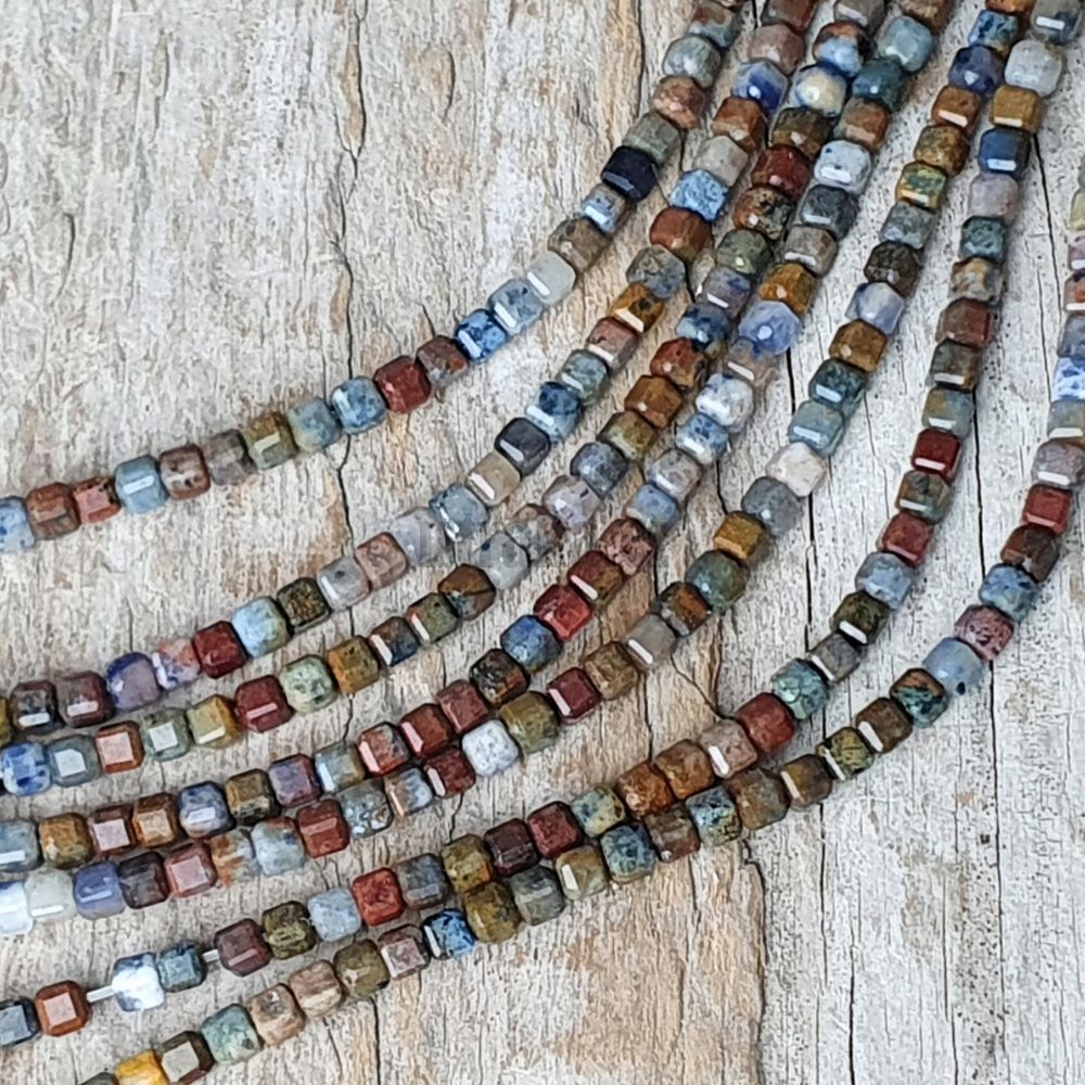 Dumortierit korálky 2,5mm kostky broušené půlšňůra