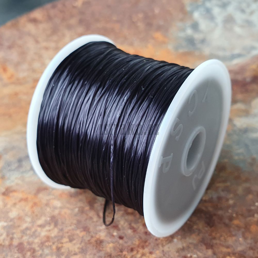 Elastická gumička s tloušťkou 0,8mm, navinutá na špulce. Gumička je plochá a když ji roztáhnete ve dvou rukách, uvidíte, že je vyrobena z více jemňoučkých vláken. Je velmi pružná a měkoučká.