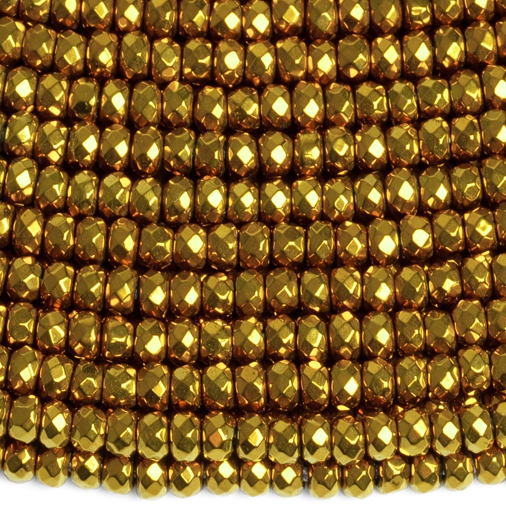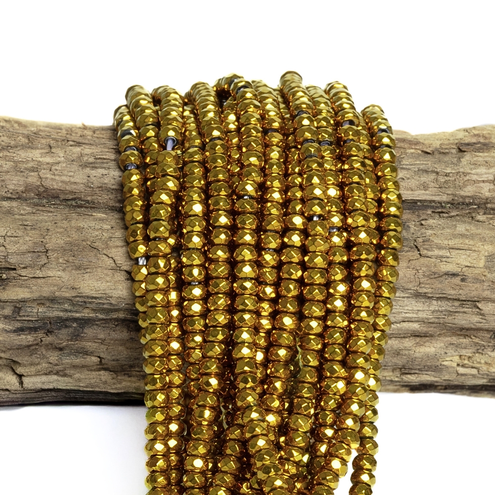 Hematit korálky 3x2mm rondelky zlaté broušené šňůra