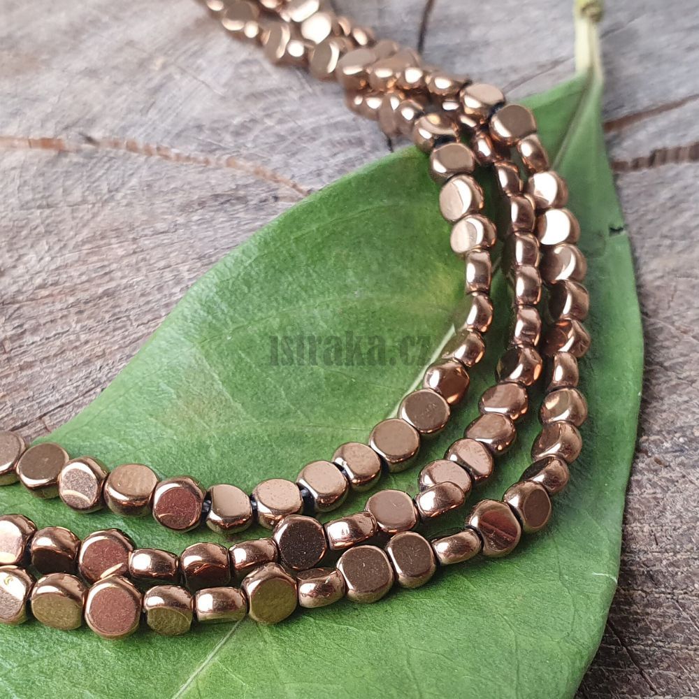 - Hematit korálky 4x2mm měděné penízek šňůra