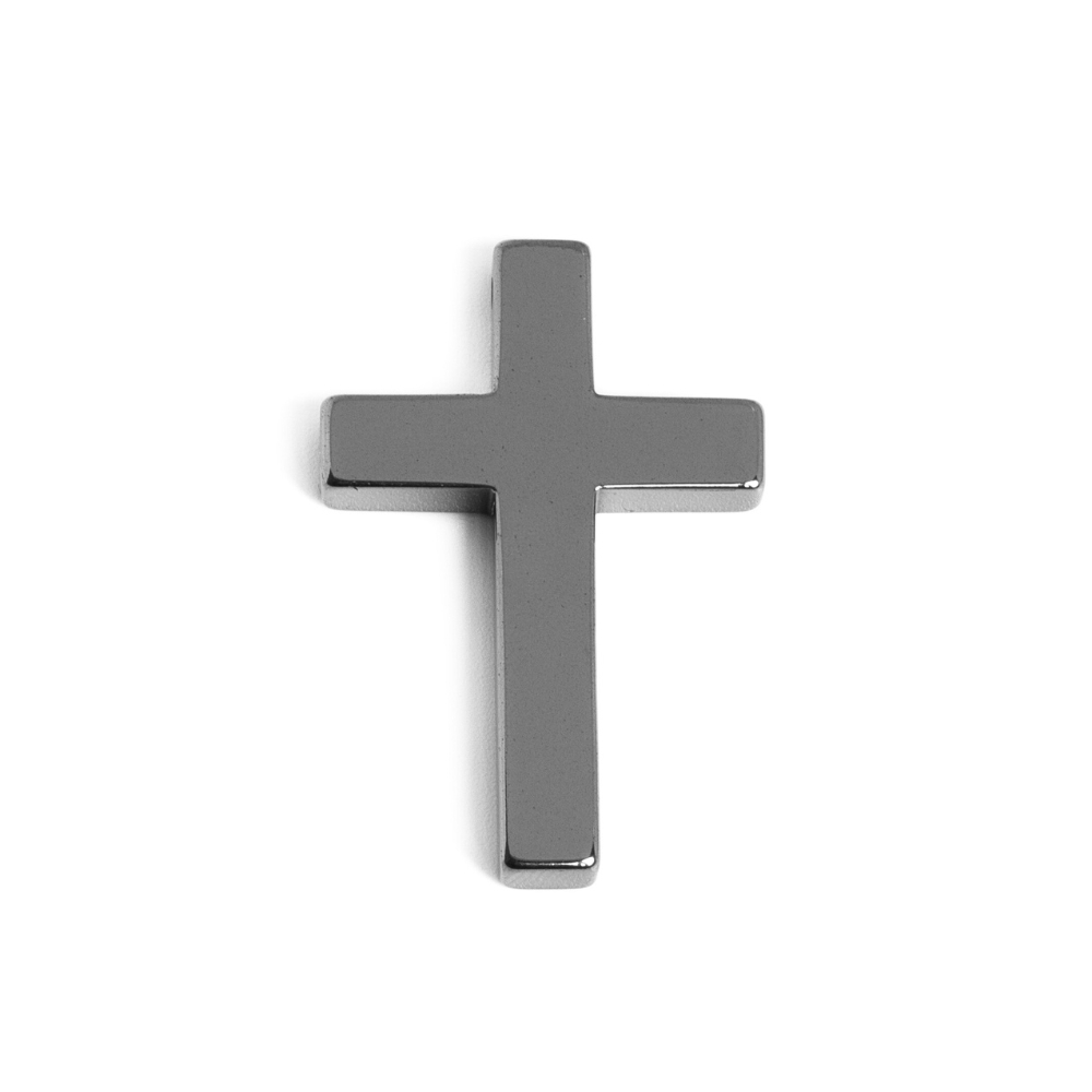 Krásný hematitový křížek, výborný na náhrdelníky a růžence. Dírka je v horní části křížku a je trochu atypická, zobrazte obě fotky :) Navlékejte na tenoučké nylonové šňůrky nebo na poplastované lanko.