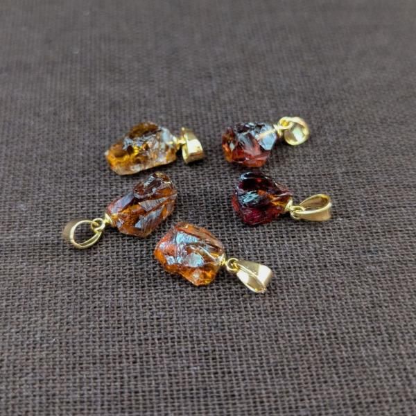 Hessonit surový minipřívěsek se zlatou šlupnou z nerezové oceli