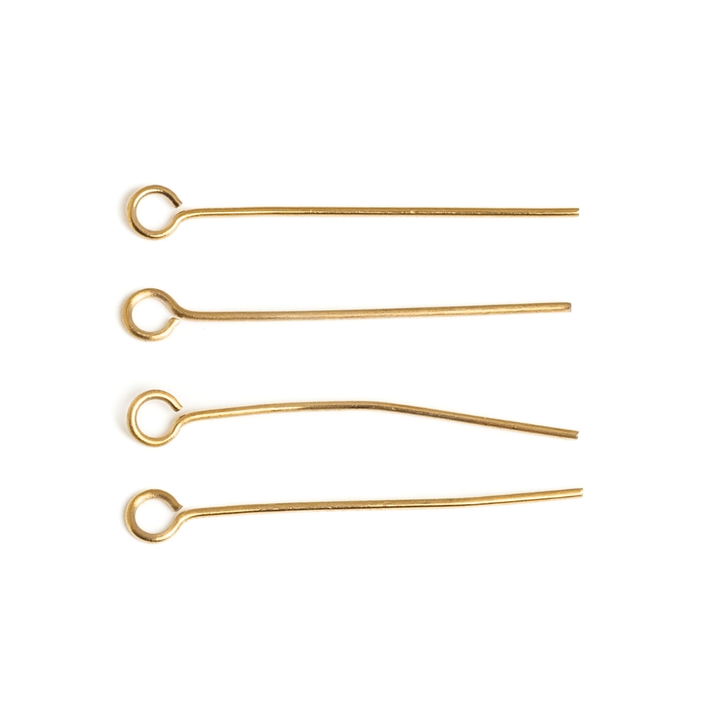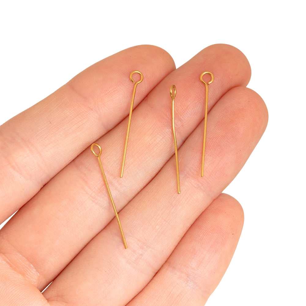 Bižuterní nýty z nerezové oceli dlouhé 26 mm s IP povrchovou úpravou zlaté barvy.