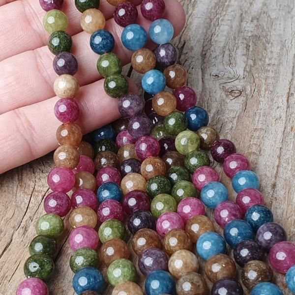 - Jadeit korálky 8mm imitace rubínu a safíru šňůra