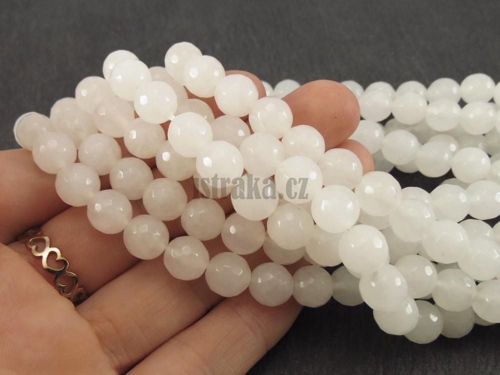 - Jadeit korálky 8mm mléčně bílé šňůra