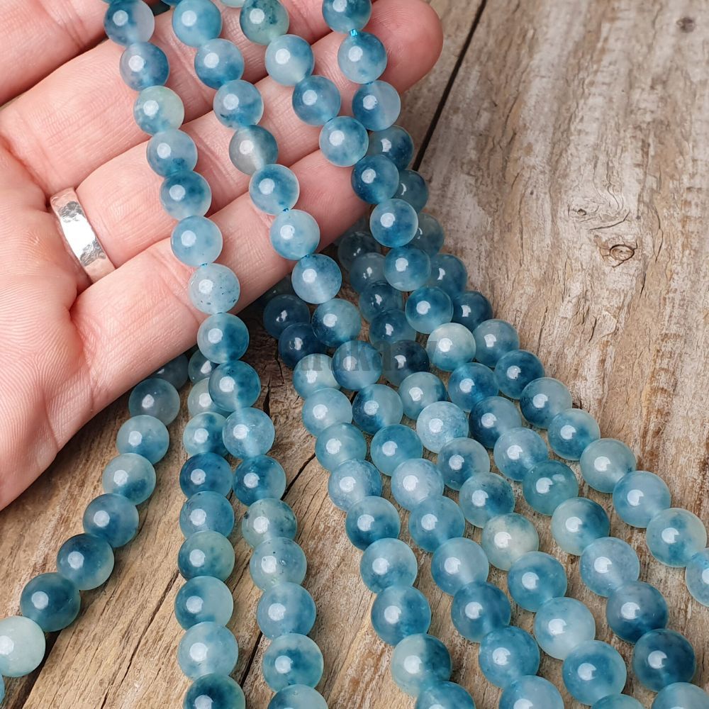 Jadeit korálky 8mm modrý mix průhledné šňůra