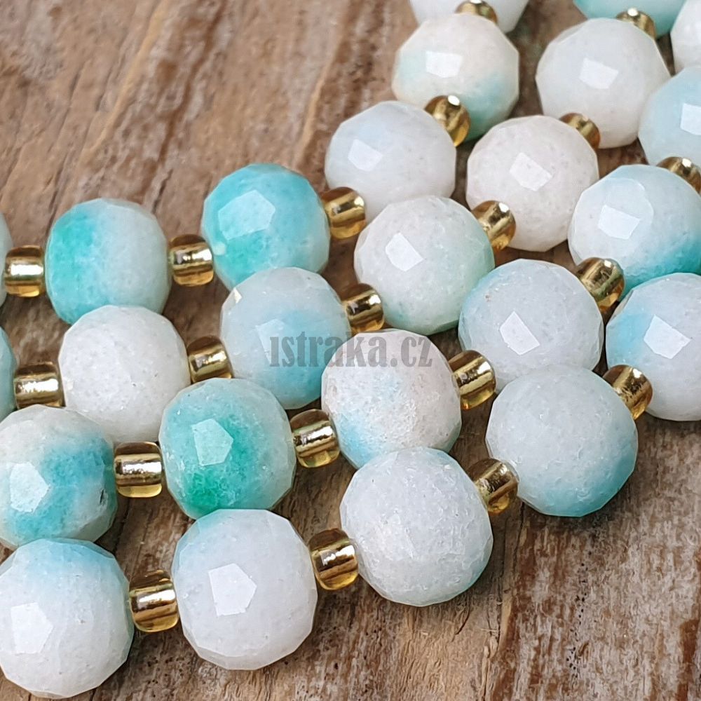- Jadeit tyrkysovo-bílý korálky 6x8mm rondelky broušené půlšňůra