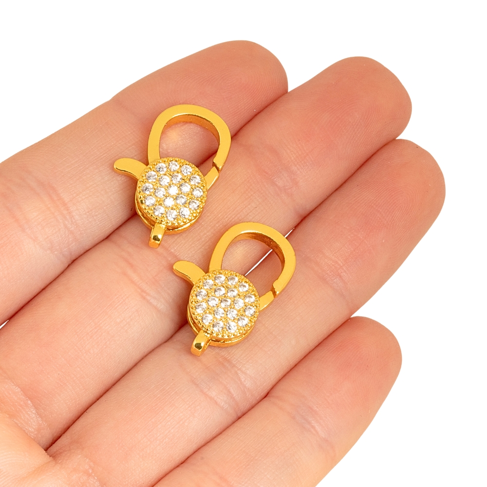 Karabina 20x13mm zlatá s bílými zirkony
