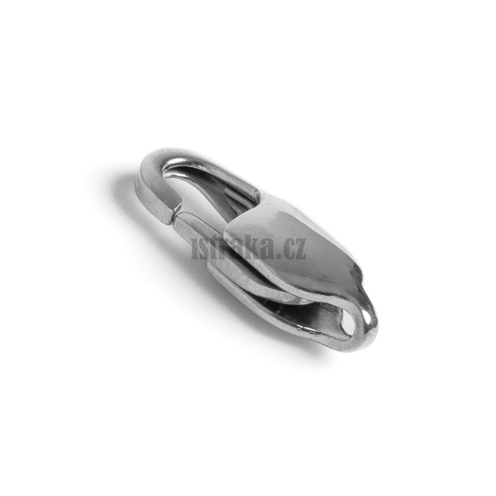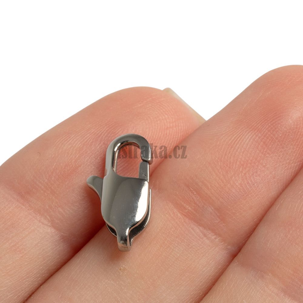 Bižuterní karabinky z nerezové oceli o velikosti cca 10 mm.