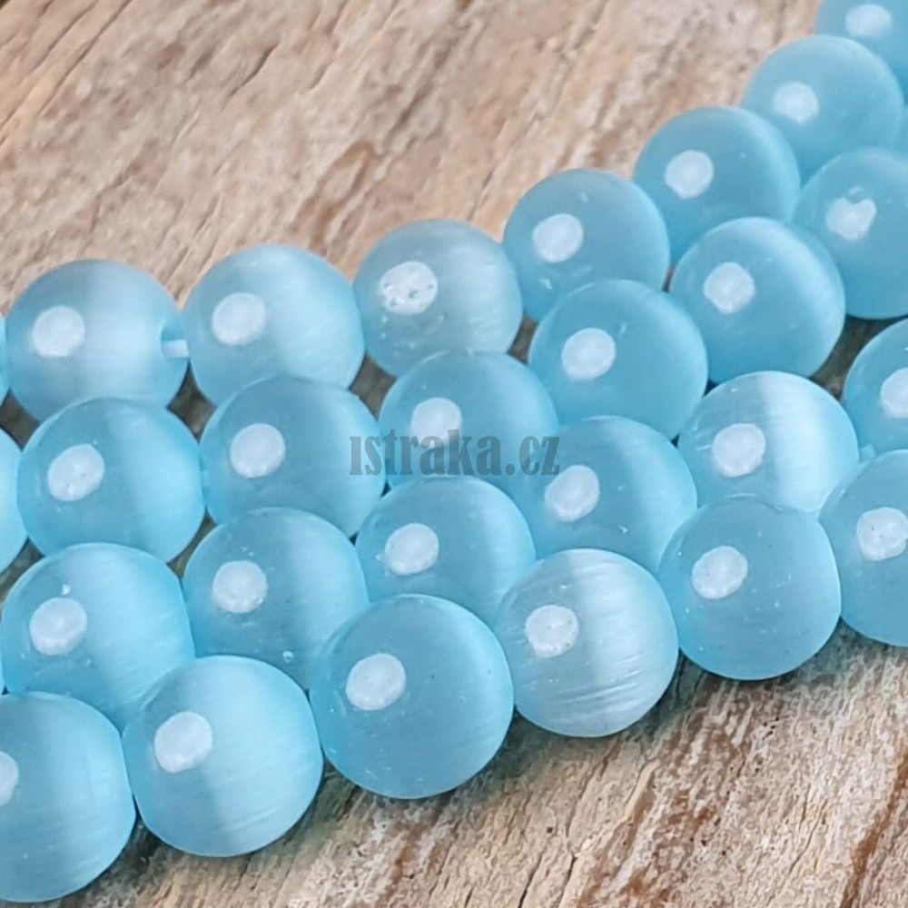 - Kočičí oči korálky 8mm blankytně modré šňůra