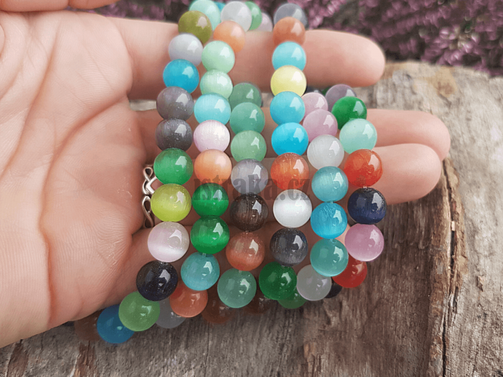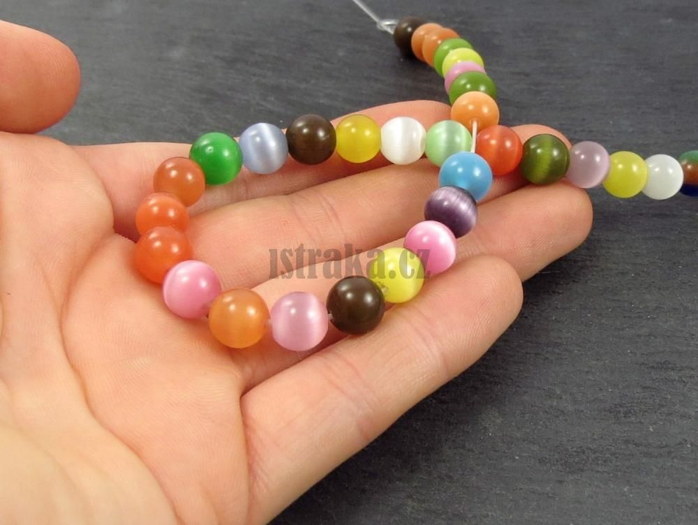 - Kočičí oči korálky 8mm mix barev šňůra