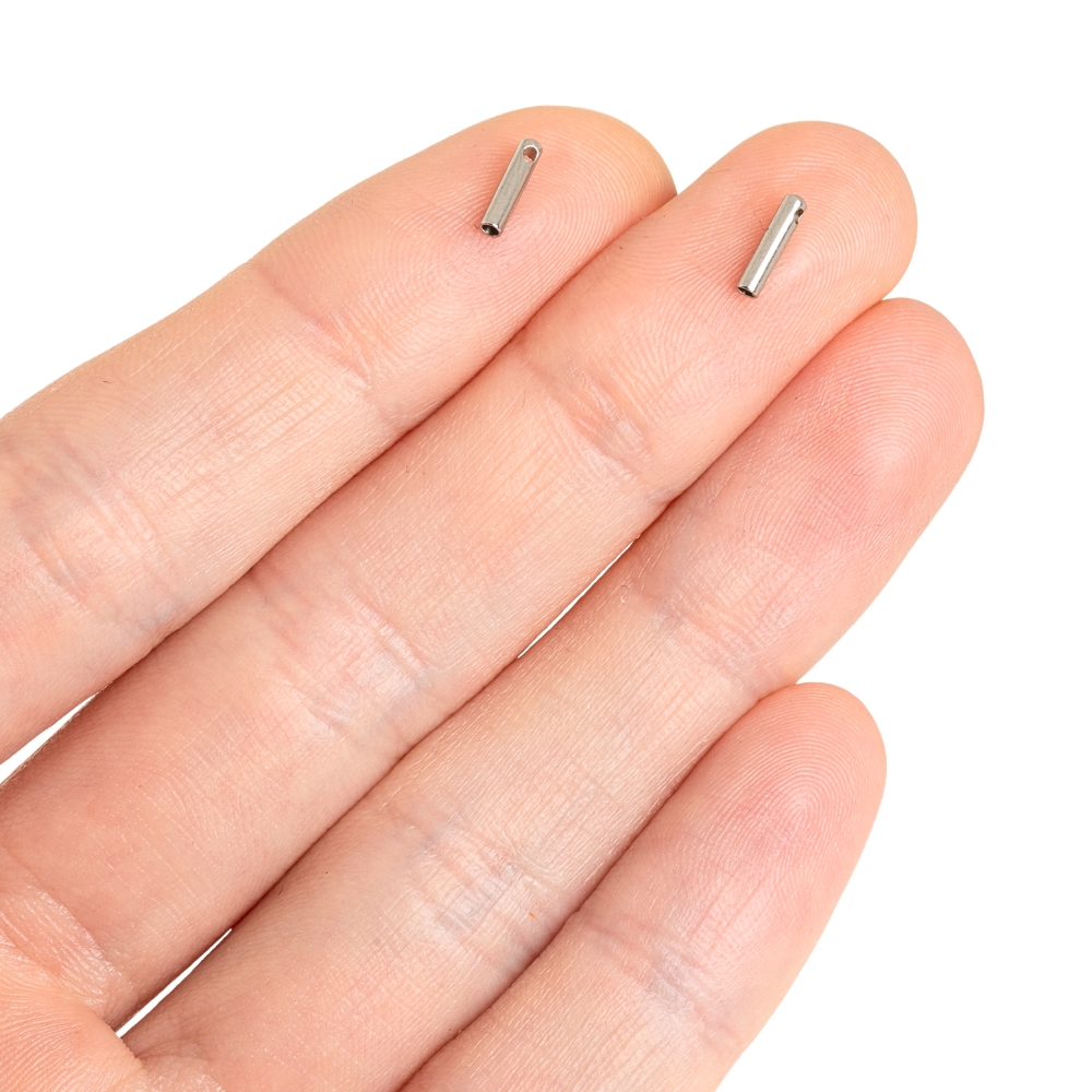 Bižuterní nalepovací koncovky z nerezové oceli na kulatou šňůrku nebo kůži. Díra má 1 mm, návlek musí být podobně silný, aby do sebe všechno dobře zapadlo :)