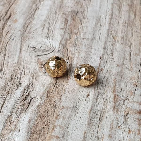 Lesklý korálek z nerezu ve zlaté barvě se vzhledem měsíčního povrchu. Dírka v tomto korálku je větší, tak do ní můžete pohodlně schovat uzlík :)