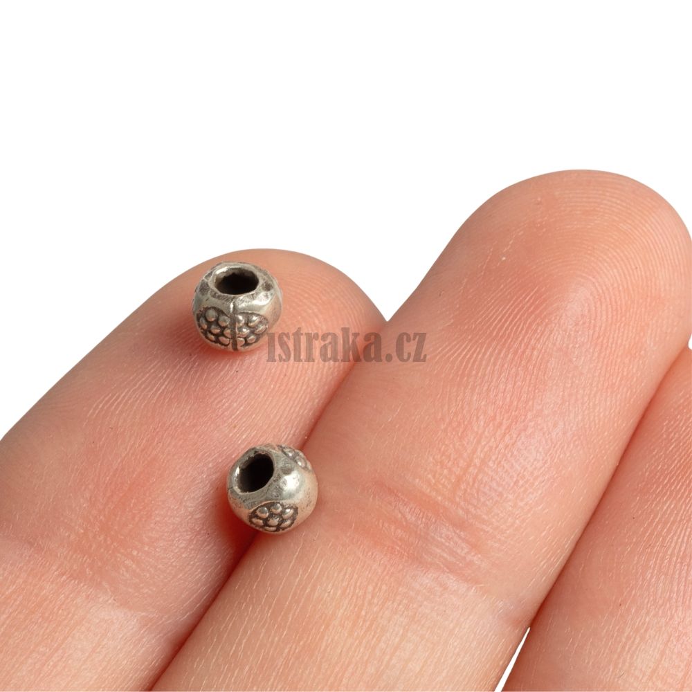 • Korálek tlustá rondelka menší s květinkami 4,5mm Ag925 stříbrná