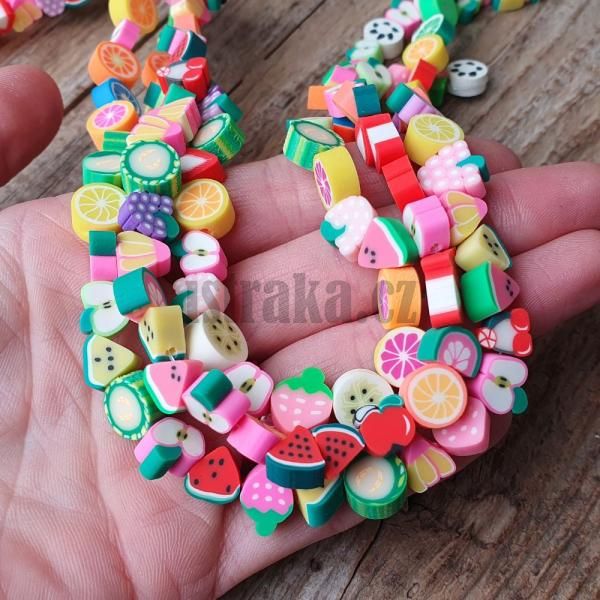 - Korálky z polymerové hmoty mix ovoce šňůra