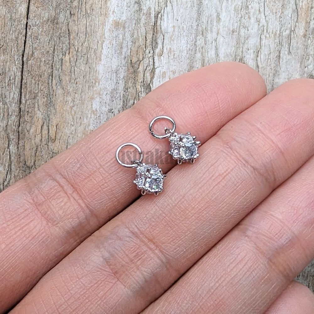 Přívěsek z bižuterního kovu stříbrné barvy s bílým zirkonem.