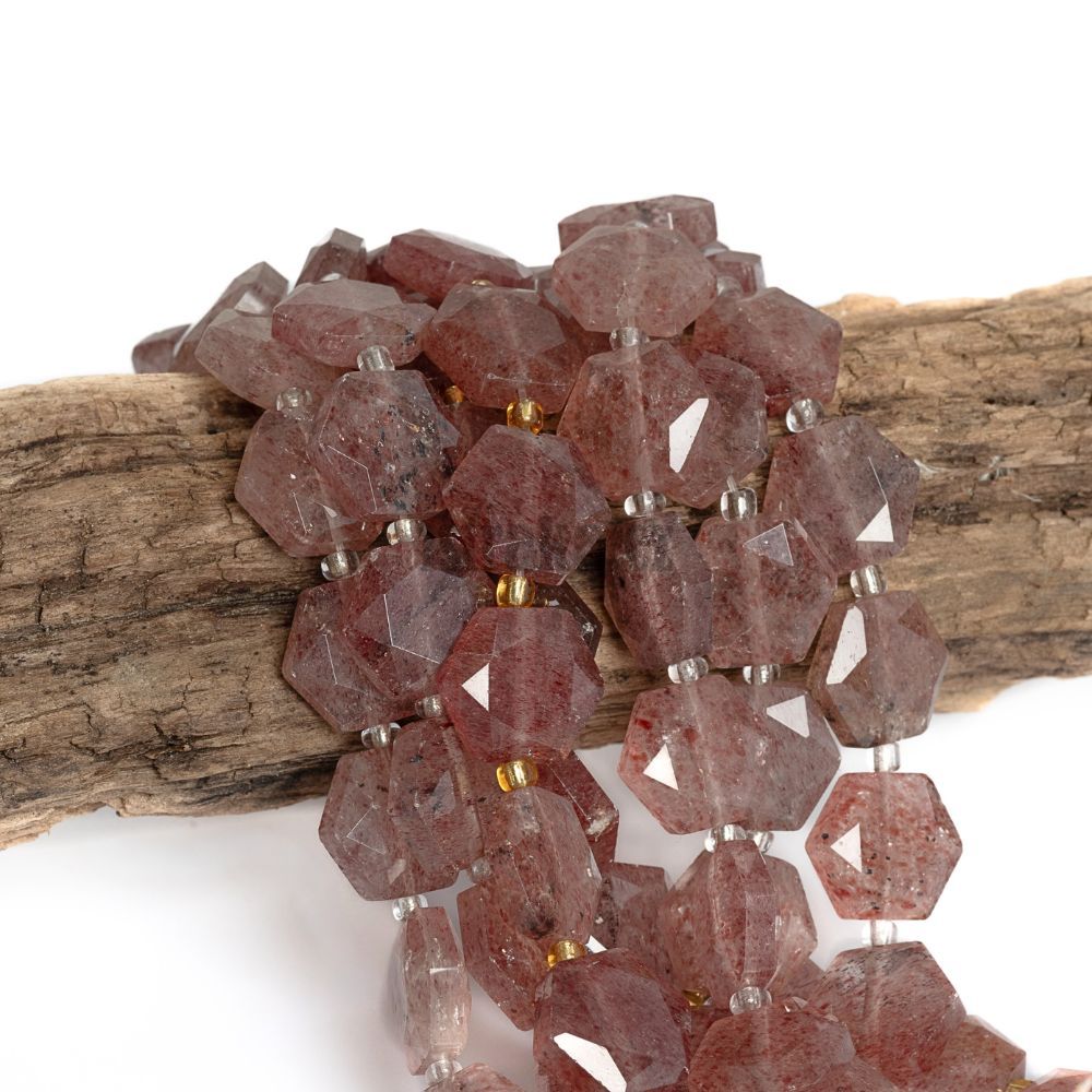 Křemen jahodový korálky 12mm hexagony broušené půlšňůra