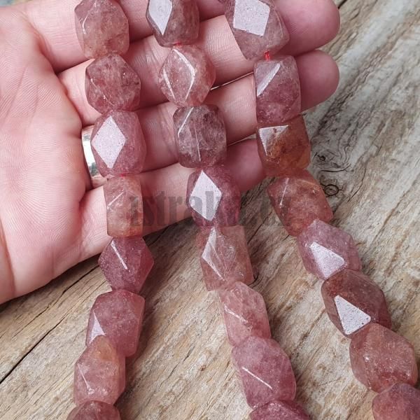 - Křemen jahodový korálky 13x16mm broušený válec půlšňůra