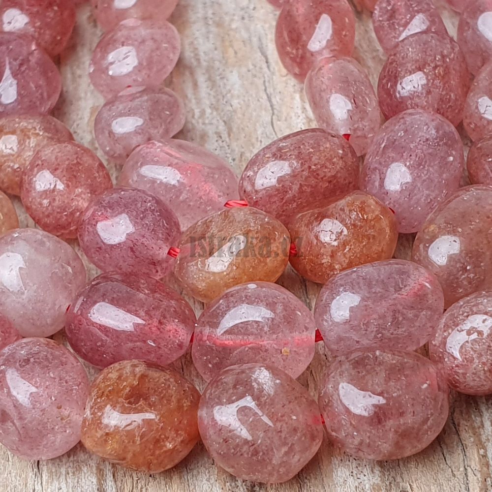 Křemen jahodový korálky kamínky 8x10mm šňůra