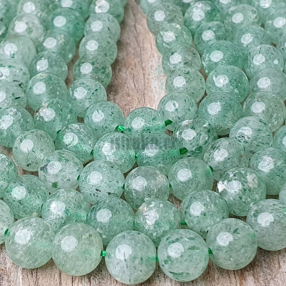 - Křemen jahodový zelený korálky 6mm půlšňůra