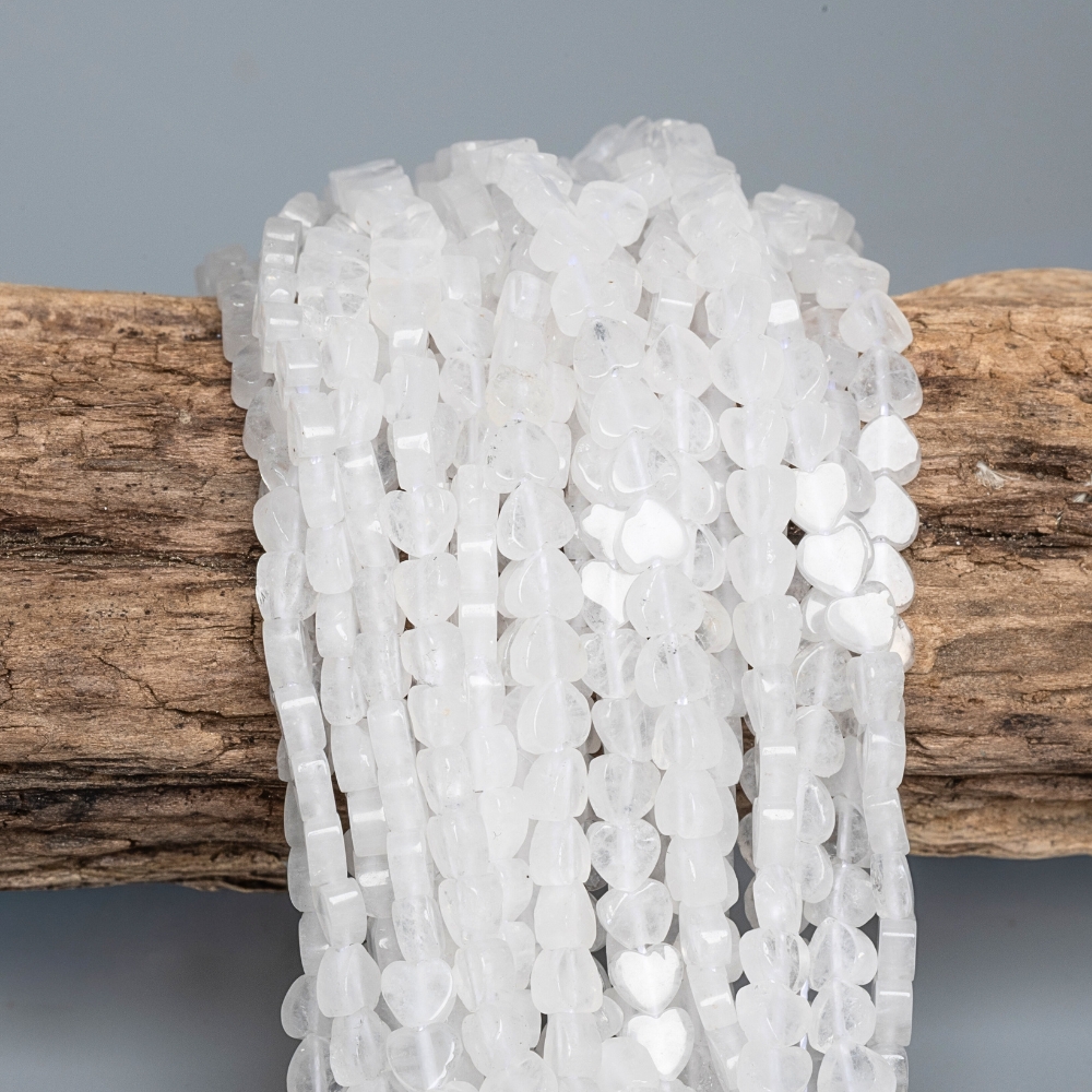 • Křišťál mléčný korálky 4mm srdíčka půlšňůra