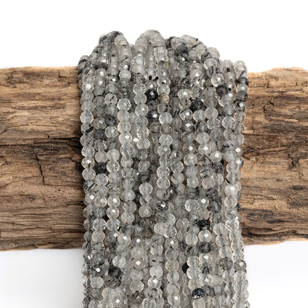 Křišťál s černým turmalínem korálky 2,5mm broušené šňůra