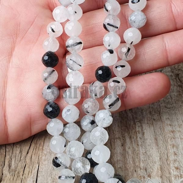 - Křišťál s černým turmalínem korálky 8mm broušené půlšňůra