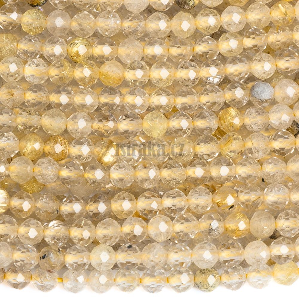 Křišťál se zlatým rutilem korálky 3mm broušené šňůra