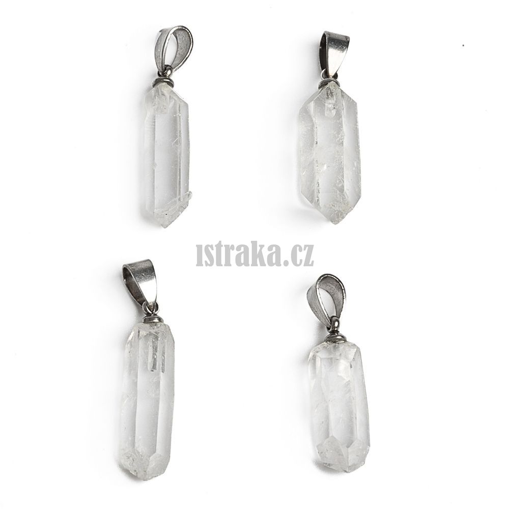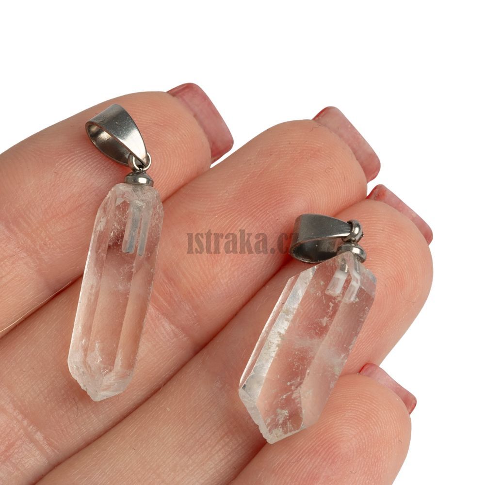 • Křišťál surový přívěsek větší se starostříbrnou šlupnou z nerezové oceli