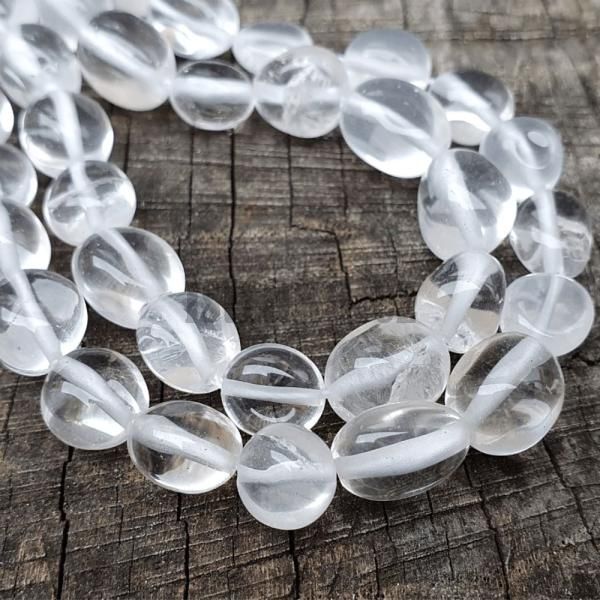 Hladké korálky z přírodního křišťálu v různých barvách na půlšňůře.