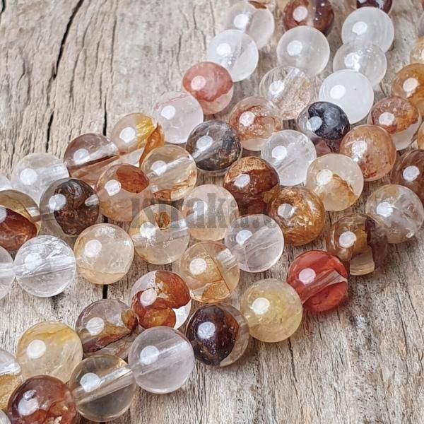 Matné korálky z minerálu křišťál s turmalínem v 8mm velikosti
