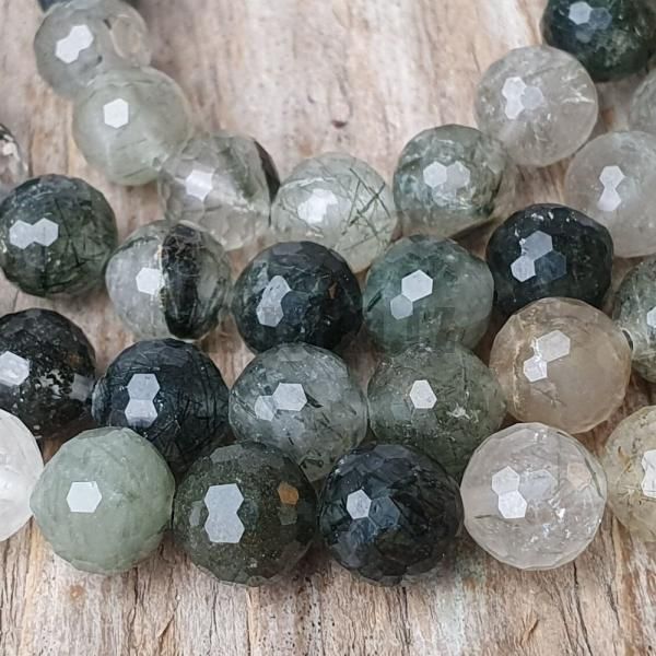 Černobílé broušené korálky z přírodního minerálu křišťál s černým turmalínem ve velikosti cca 8mm.