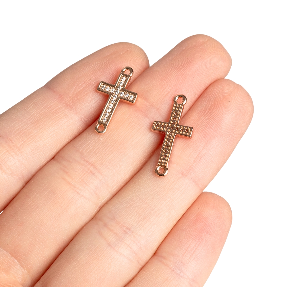 Kříž mezidíl menší růžové zlato s bílými zirkony
