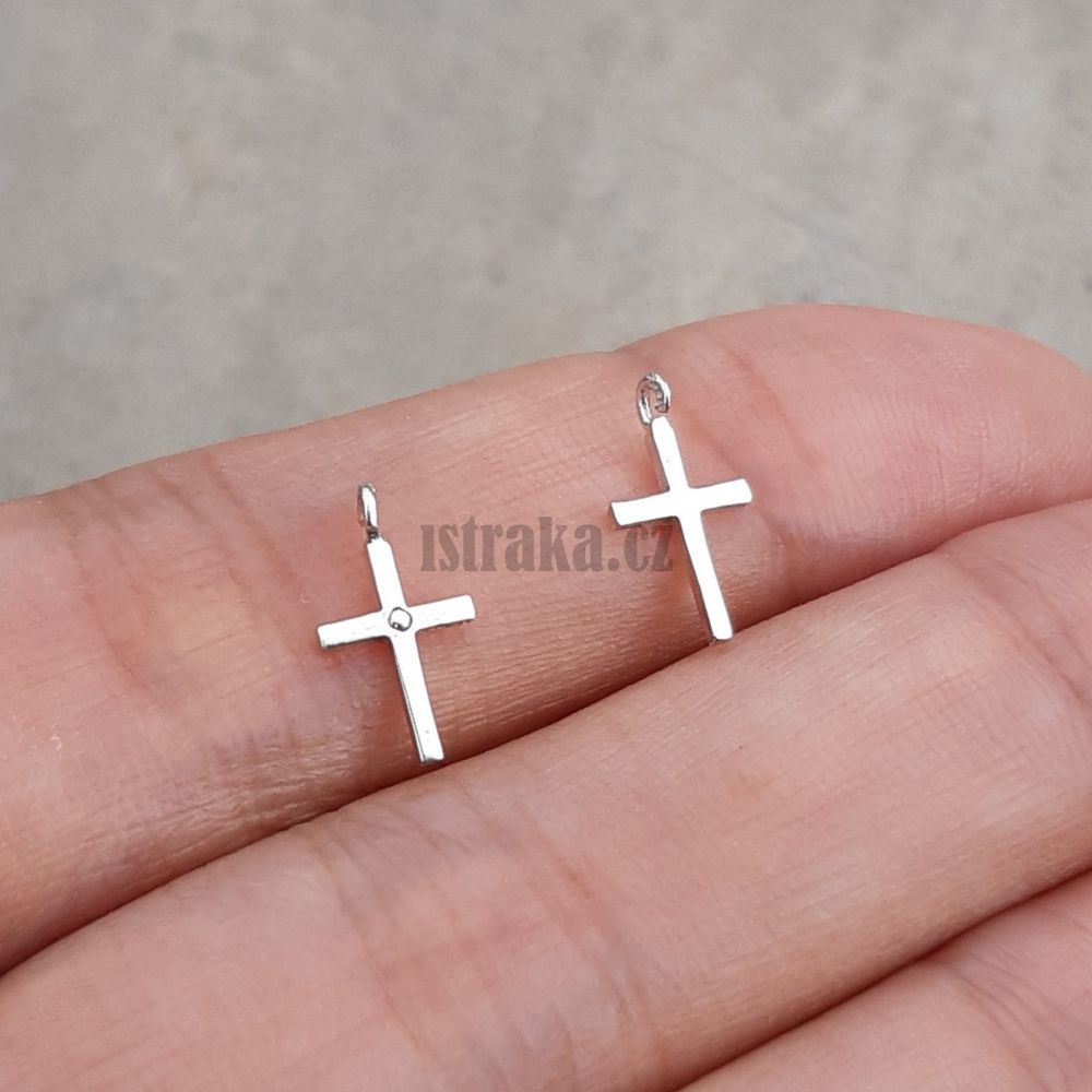 Malinký přívěsek křížek ze stříbra Ag925, který má dírku k navlečení v horní části samotného křížku.